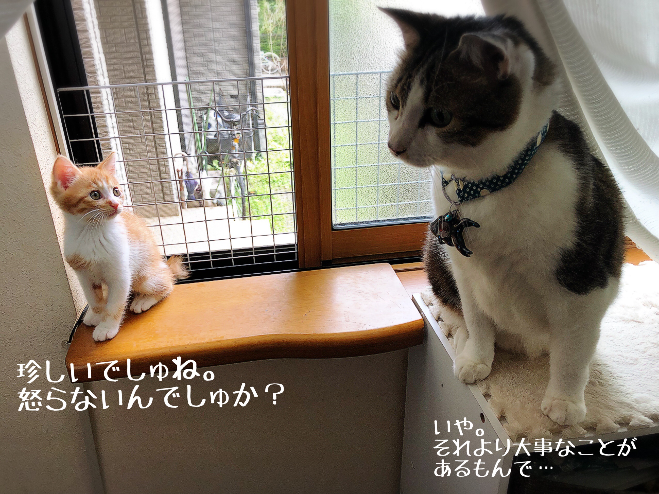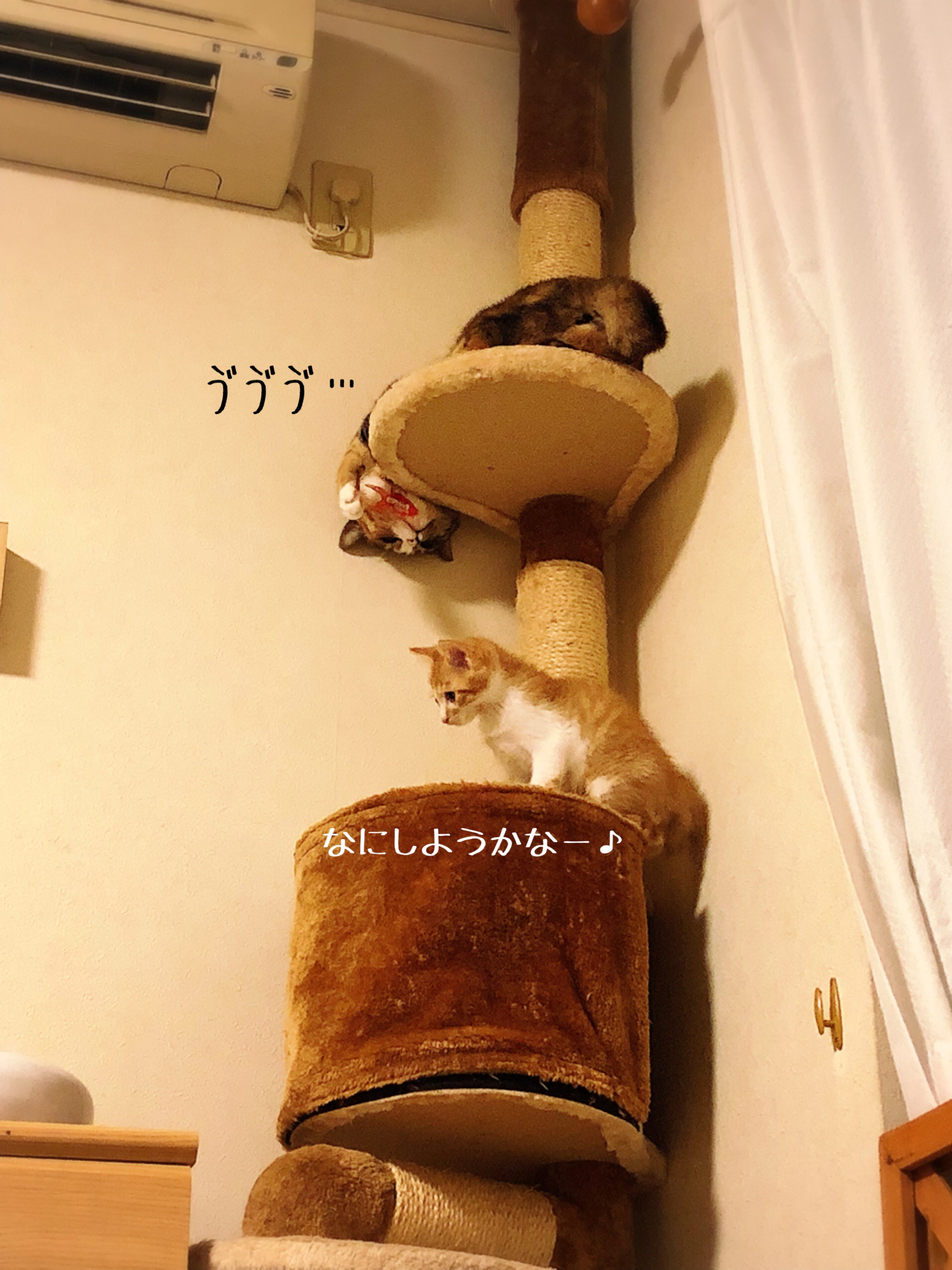 今では仲良しになってるけど、住み分けも猫が決めるから人間は口出しをしたらダメやって言われたから、猫の世界は猫達で決めて、個々にお気に入りを見つけて仲良くしてます。